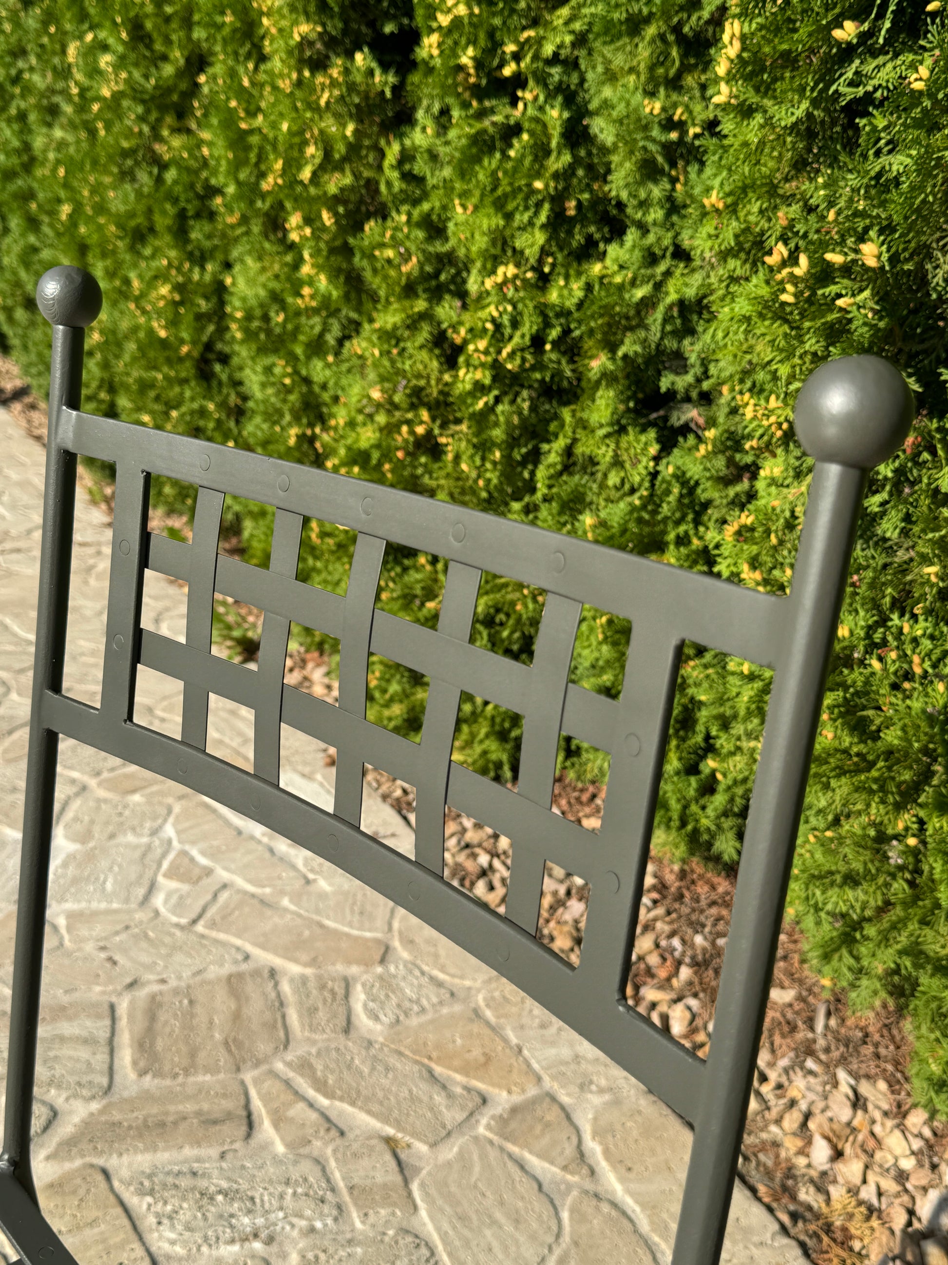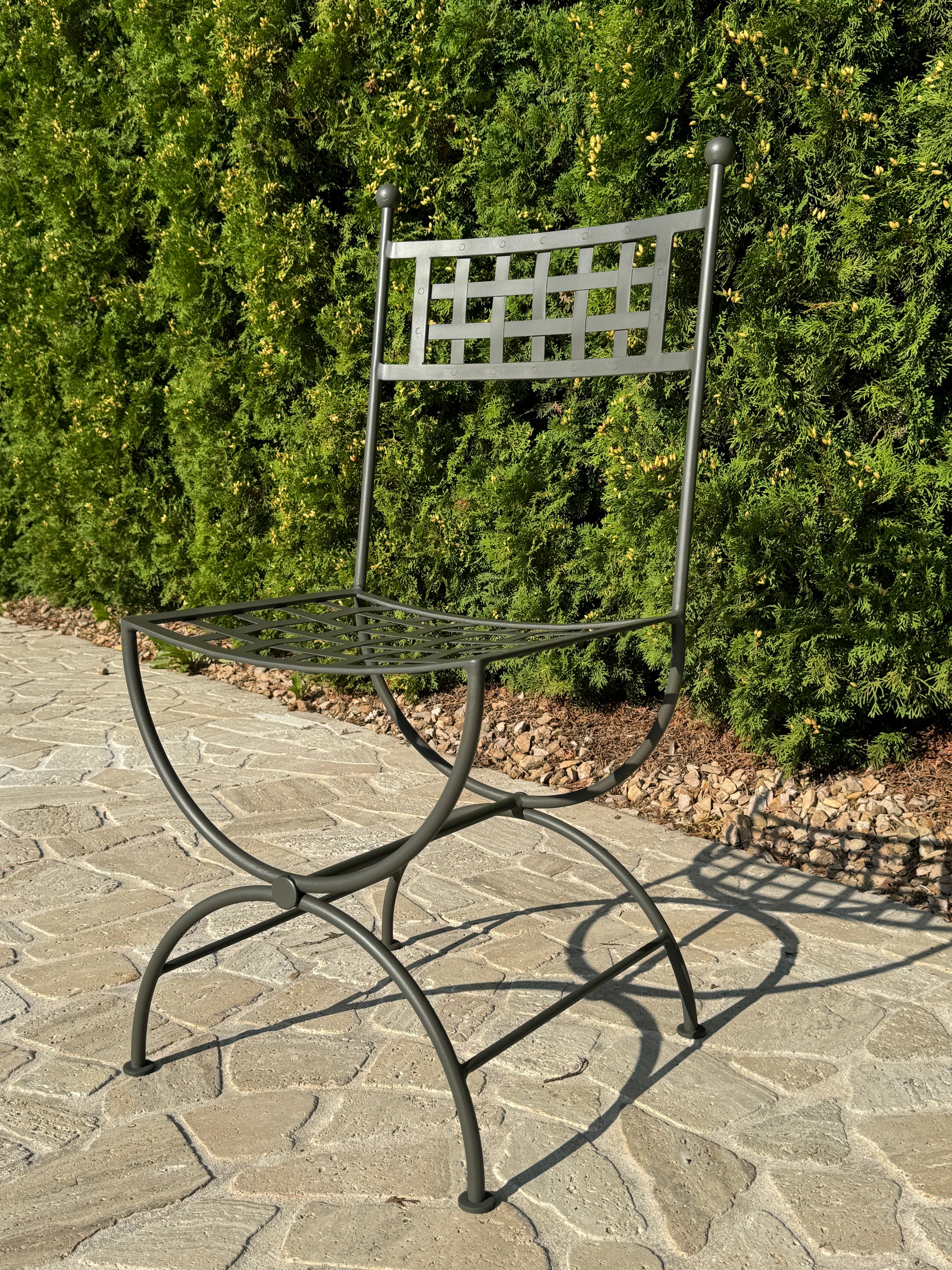 Enhance your garden or patio with the Milan Garden Chair, made from wrought iron and coated in classic RAL 7022 paint (non-epoxy). Durable, elegant, and weather-resistant. 8 pieces available, brand new and ready to ship.